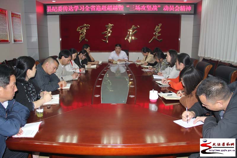 4月23日全省追赶超越一季度点评暨精准扶贫、生态环境保护、规范市场秩序“三场攻坚战”推进视频会议后,县纪委当晚立即召开全体干部职工会议,专题研究贯彻落实措施。